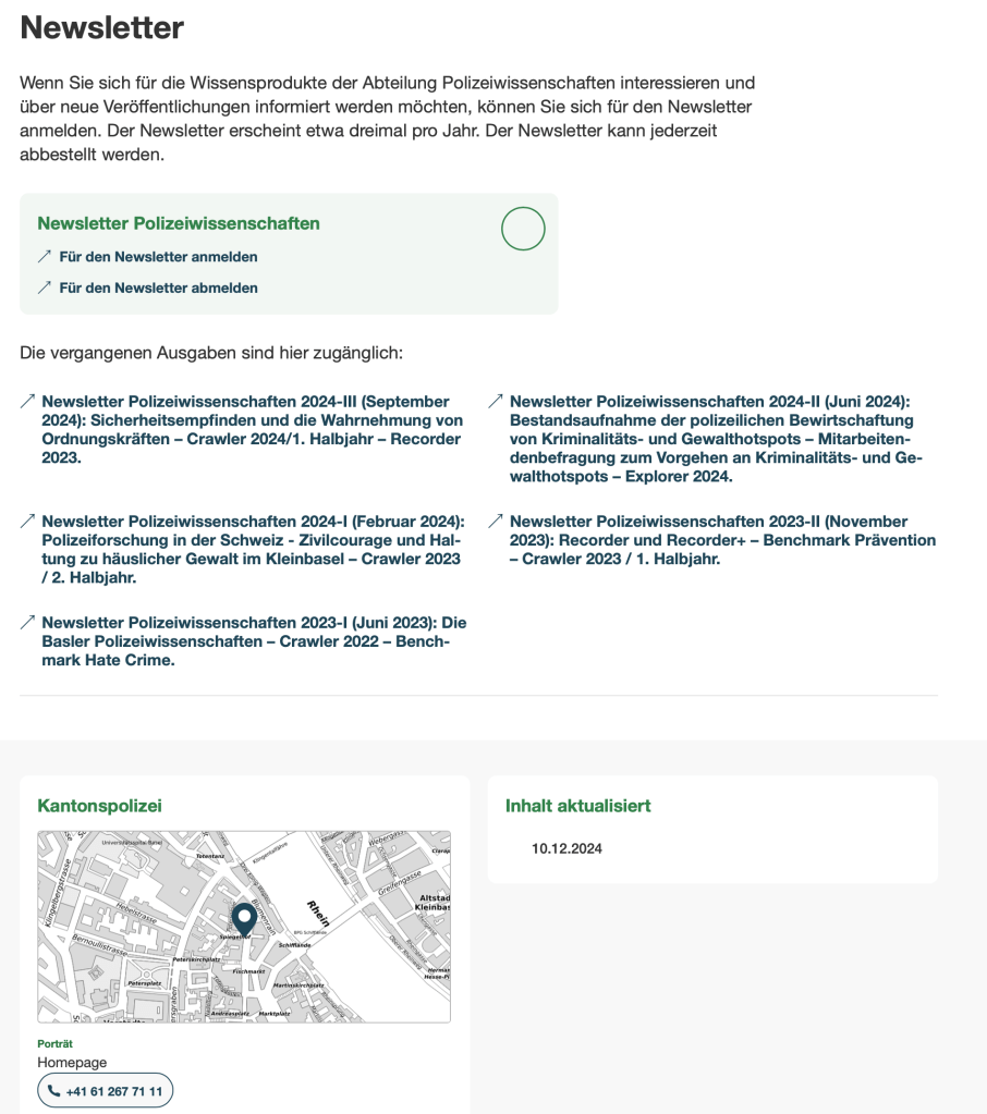 Die Abteilung Polizeiwissenschaften ist online gegangen, sie verfügt nun über eine eigene Website und einen Newsletter. Der Newsletter kann auf der Webseite abonniert werden und erscheint 3-4x jährlich.